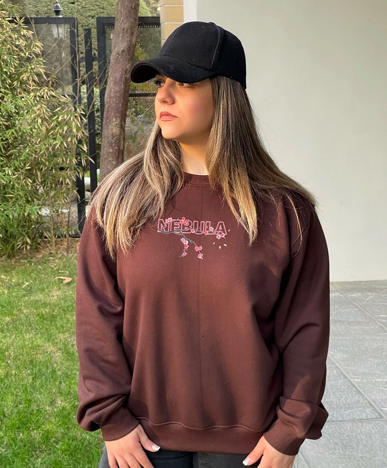 سویشرت دورس قهوه ای مدل شکوفه گیلاس